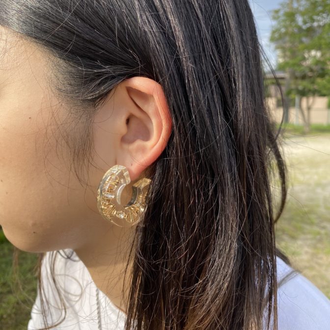 涼しげなクリアに少しお洒落感を取り込んだピアスです。